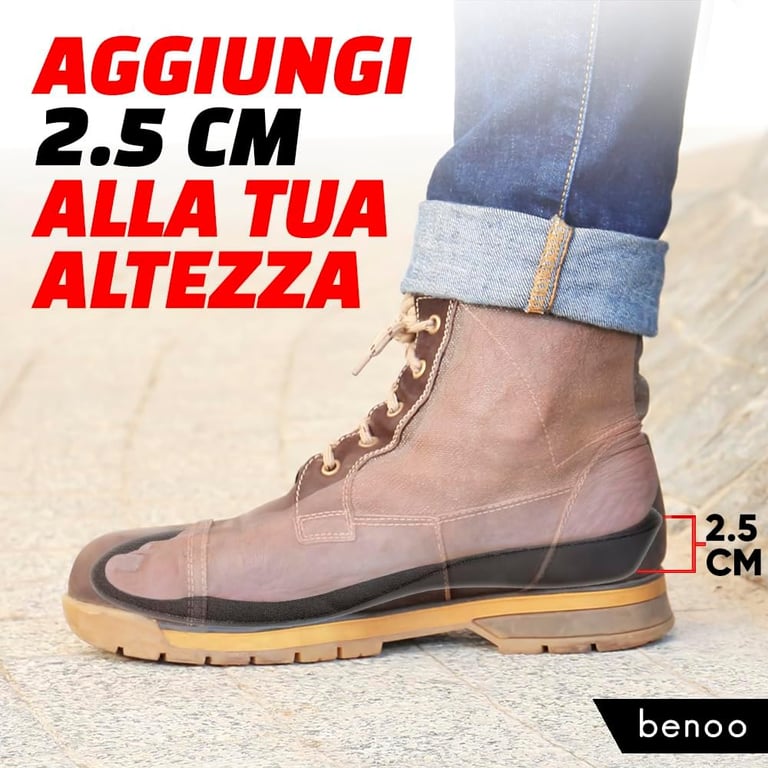 Finalmente +5 cm senza fatica! Le solette masalto sono comodissime e nessuno nota la differenza, ma io mi sento più sicuro.